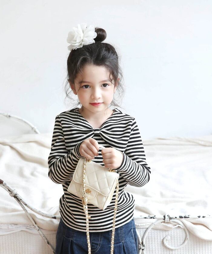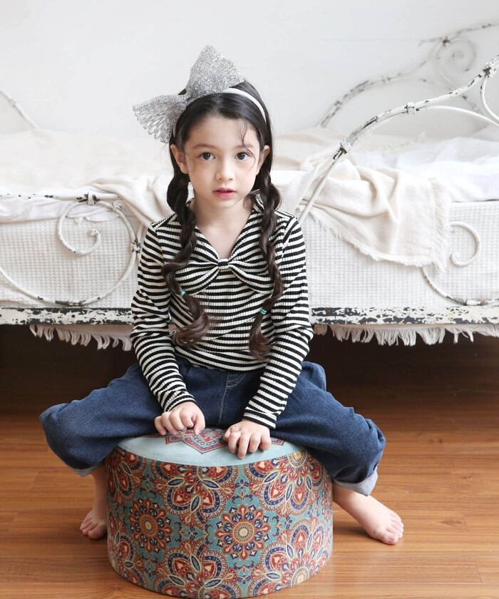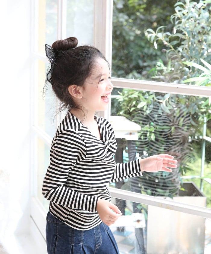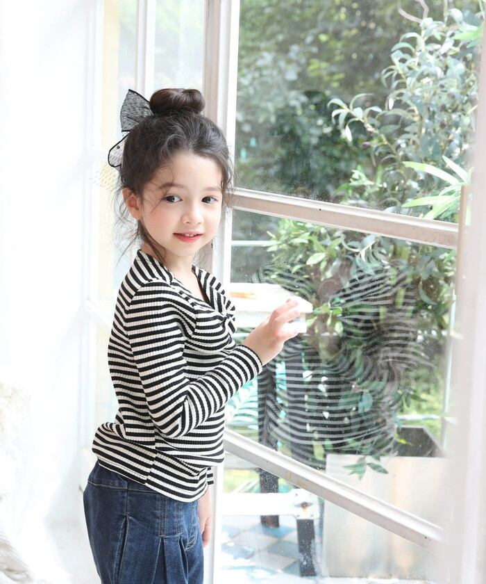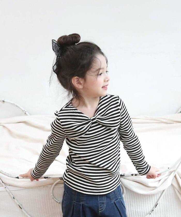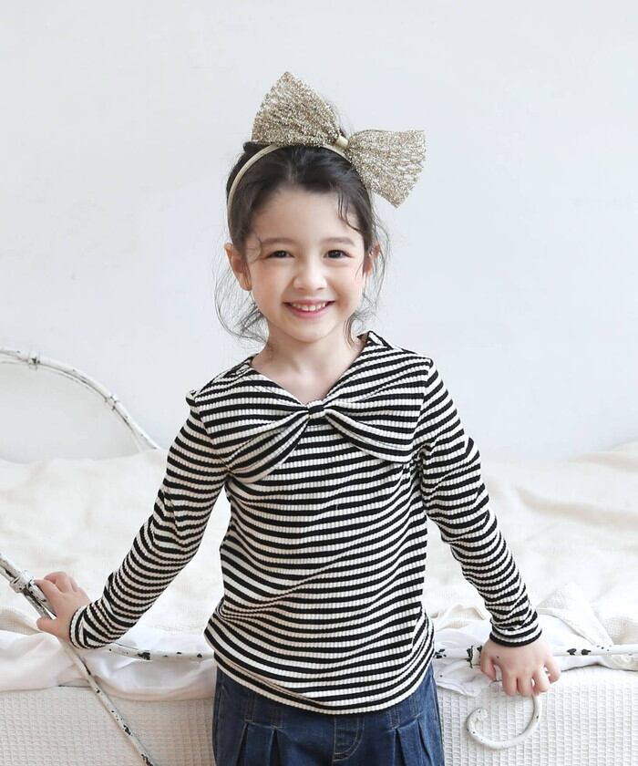 女の子 キッズ 長袖 Tシャツ 通販 ロンT 53062202 長袖Tシャツ カットソー リボン ボーダー おしゃれ かわいい オシャレ 可愛い カジュアル 秋 冬 秋冬 こども 女子 小学生 トップス 子ども服 子供服 キッズファッション