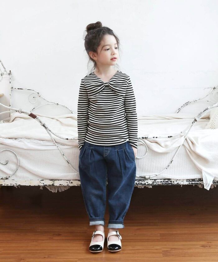 ・ベーシックなアイテムに見えて 女の子のこだわりをいっぱい詰め込んだいま気になる子供服Roraウリボンボーダー柄トップスの登場です♪