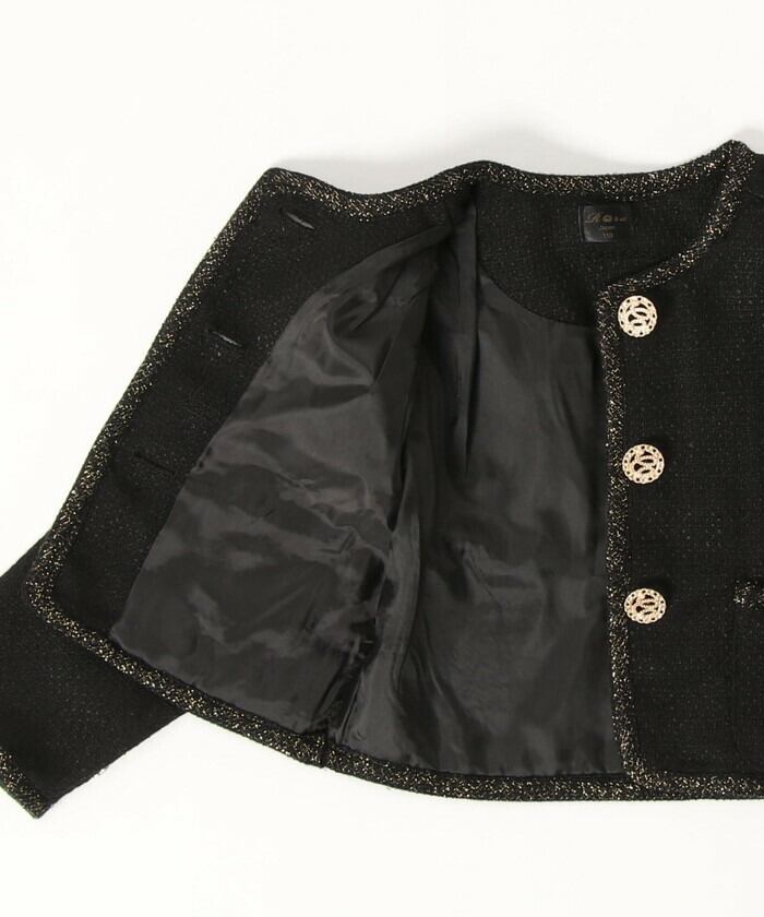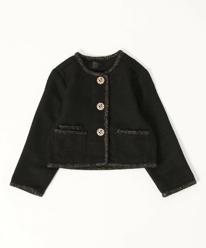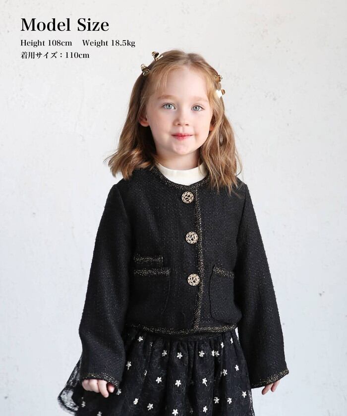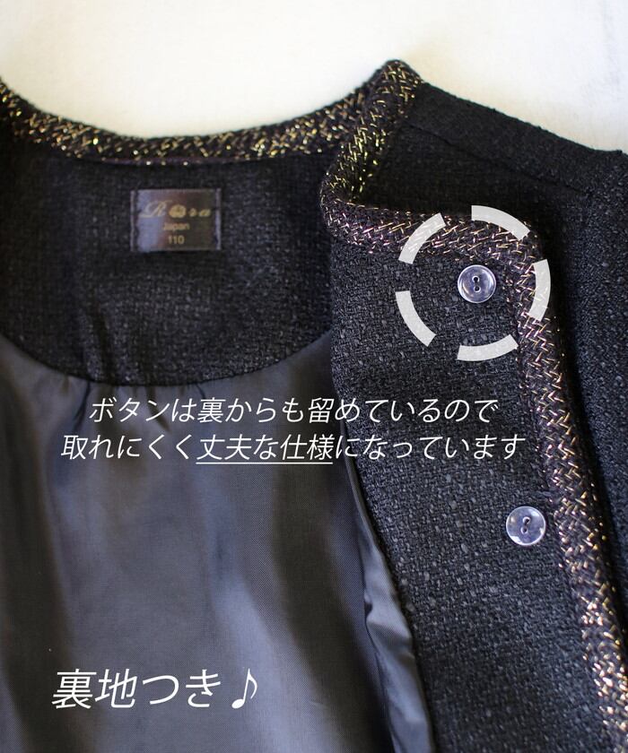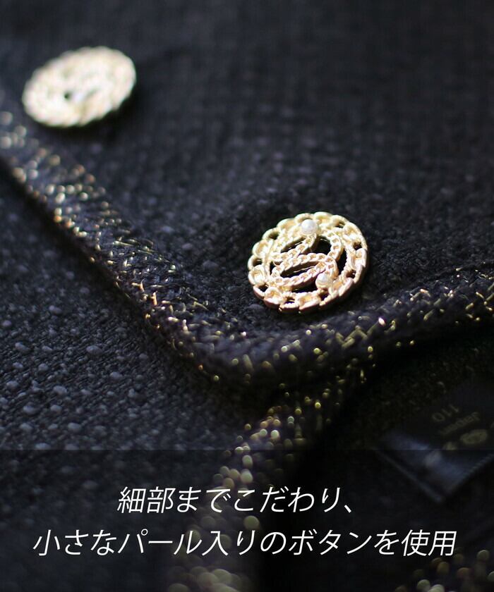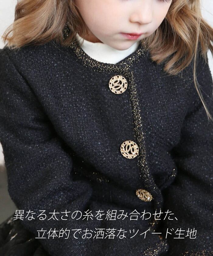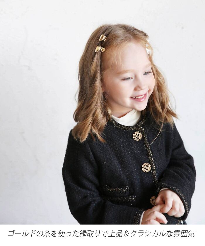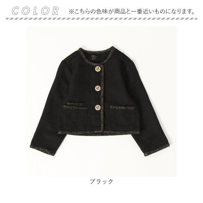 キッズ ジャケット 女の子 フォーマル 通販 ツイードジャケット 61012302 キッズジャケット ノーカラージャケット 黒 ブラック ゴールド おしゃれ お呼ばれ 入園式 卒園式 入学式 卒業式 上品 受験 アウター 子ども服 子供服 キッズファッション