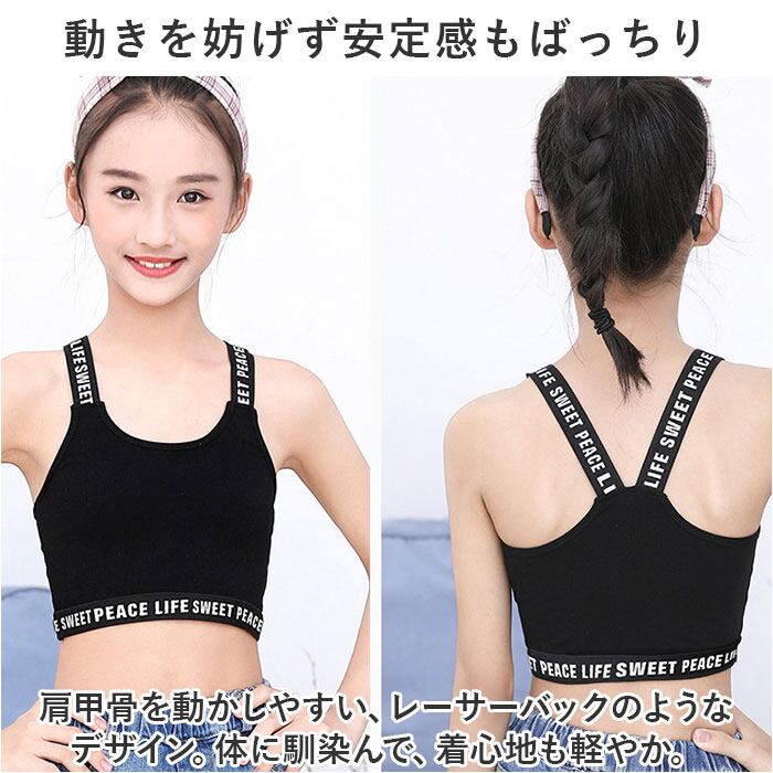 ・ショルダーやアンダーは柔らかく伸びるゴム仕様。スポーツブラのように使えるつくり。
