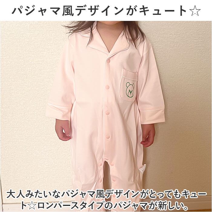 ・大人みたいなパジャマ風デザインがとってもキュート☆ロンパースタイプのパジャマが新しい。