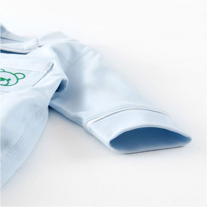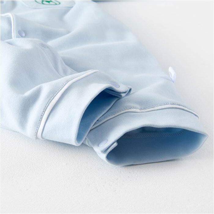 ・パチっと簡単なスナップボタンを搭載。寝たままの姿勢でも着せやすく、おむつ替えもできる。