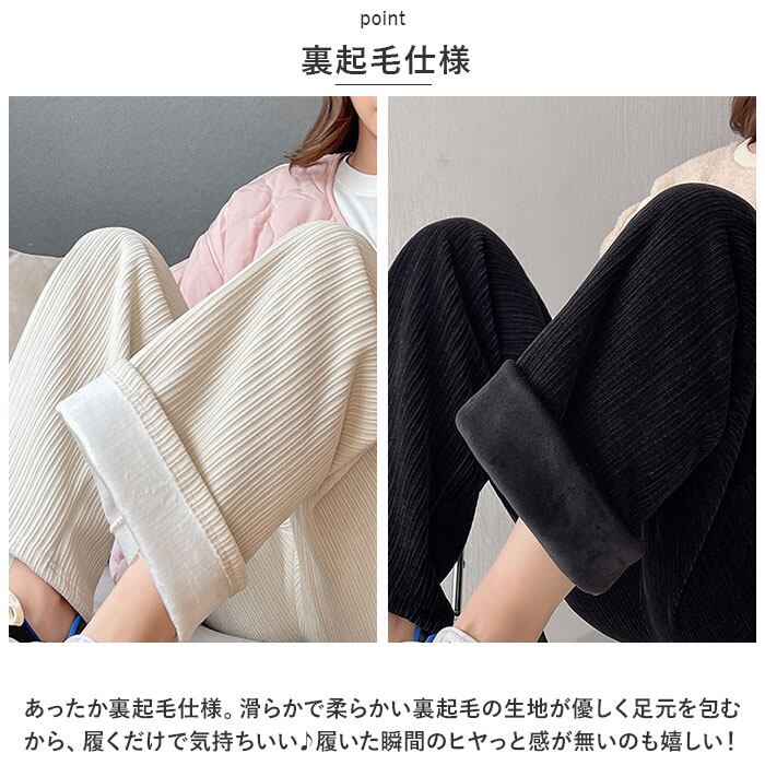 ワイドパンツ レディース 秋冬 通販 ロングパンツ 長ズボン ズボン ボトムス ガウチョパンツ ストレート パンツ 裏起毛 暖かい きれいめ ハイウエスト カジュアル ウエストゴム シンプル 無地 通勤 通学 ゆったり オシャレ おしゃれ かわいい カワイイ