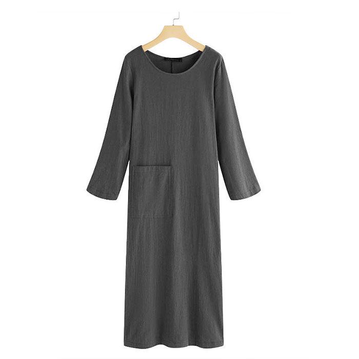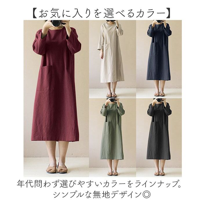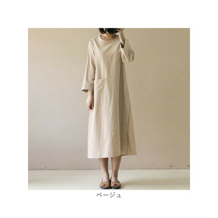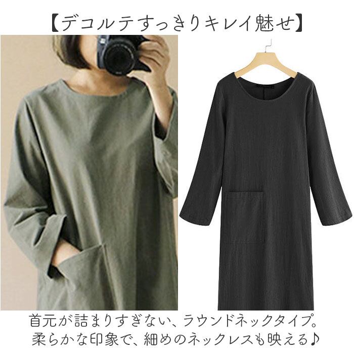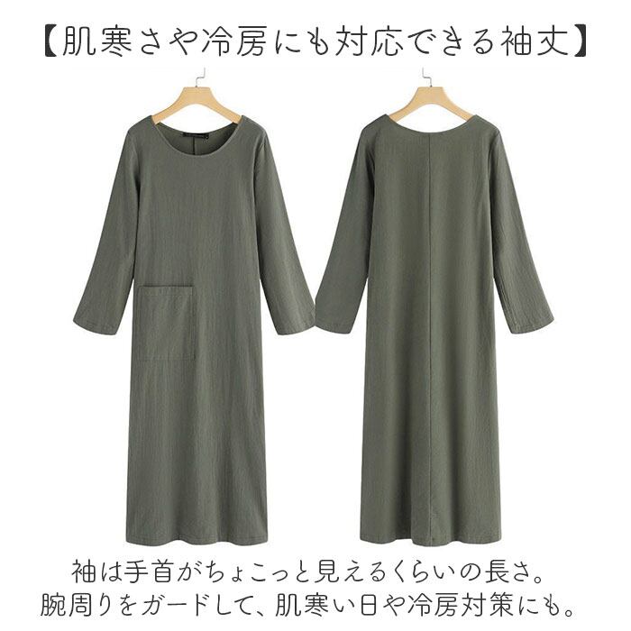 長袖 ワンピース ロング 通販 ロングワンピース ワンピ レディース 綿 ミモレ丈 ゆったり おしゃれ オシャレ 春 春物 ラウンドネック サイドスリット ポケット付き リラックス ナチュラル カジュアル シンプル 快適 体型カバー お出かけ