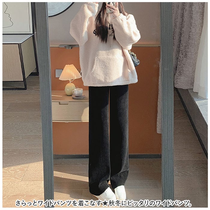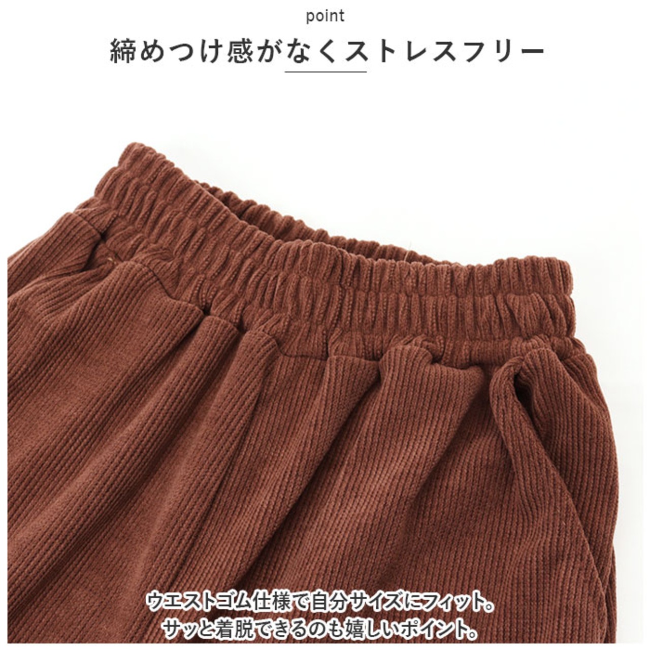 ・おもて面のコーデュロイ生地が秋冬コーデにピッタリ★どんなトップスとも合わせやすい、シンプルなワンカラーデザイン。