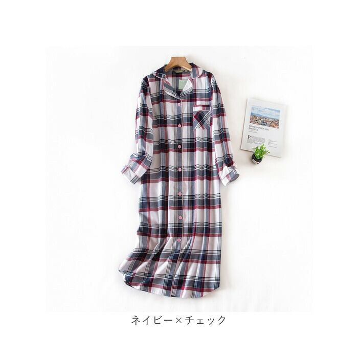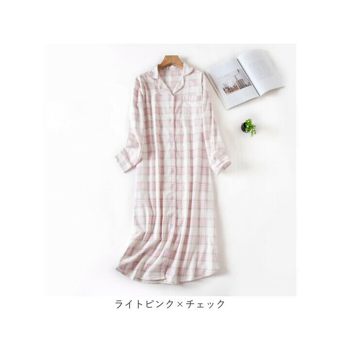 ネグリジェ ワンピース レディース 通販 パジャマ ルームウェア ルームウエア 部屋着 ナイトウェア 寝間着 寝巻き 前開き 長袖 柄 通気性 かわいい 冬 春 秋
