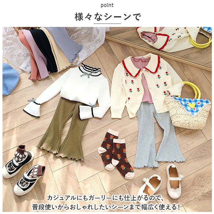 ・裾広がりのフレアシルエットがこだわりポイント☆女の子が嬉しい、可愛らしさ満点のパンツスタイルに。