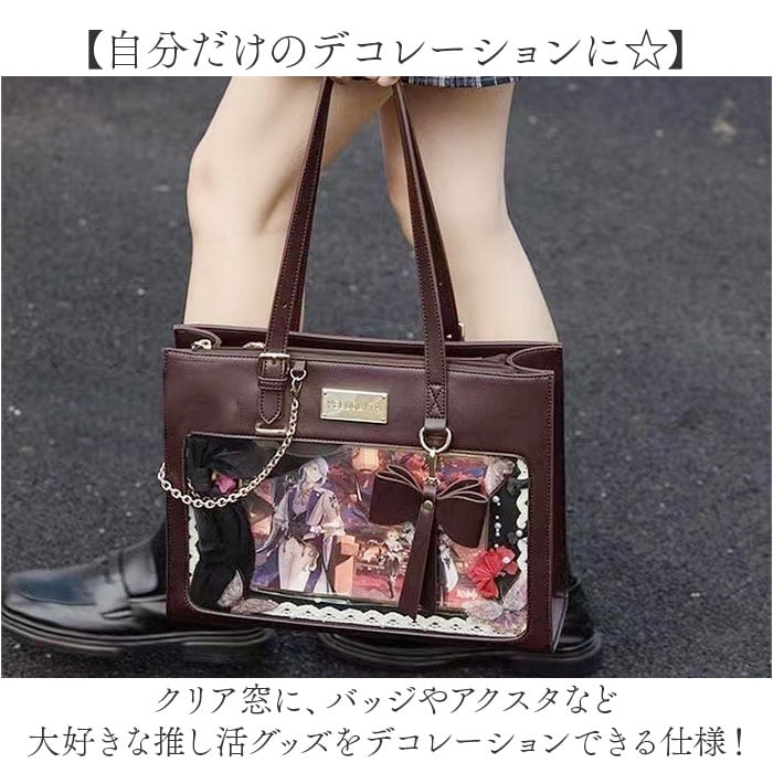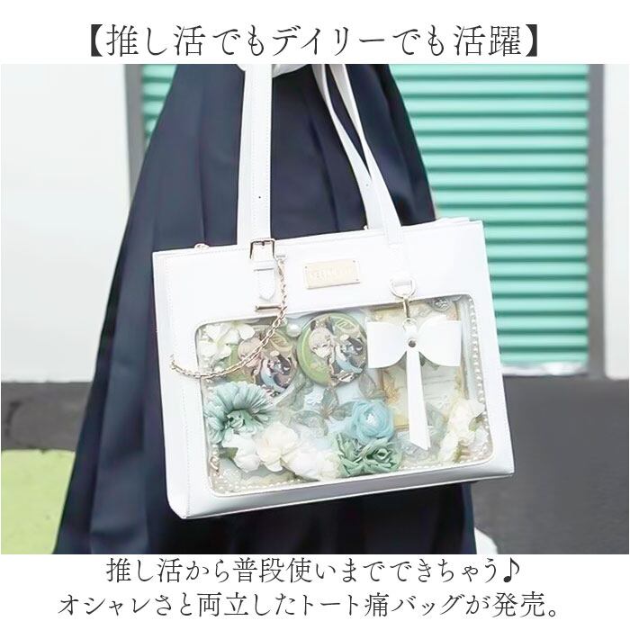 痛バッグ トートバッグ 通販 痛バ トート ショルダー 2way 推し活バッグ 痛バック 推し活 バッグ かばん カバン 鞄 肩掛け ハンドバッグ クリア 缶バッジ おしゃれ かわいい いたばっく いたば リボン お出かけ 通勤 通学 ヲタ活 オタ活 大人