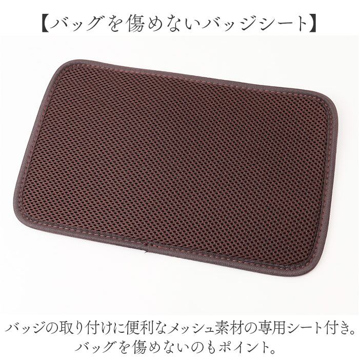 ・バッジの取り付けに便利なメッシュ素材の専用シート付き。バッグを傷めないのもポイント。