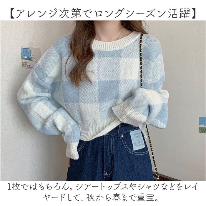 ・爽やかな風合いで、気分も晴れやかに♪おしゃれに着こなせる「ギンガムチェック柄ニット」。