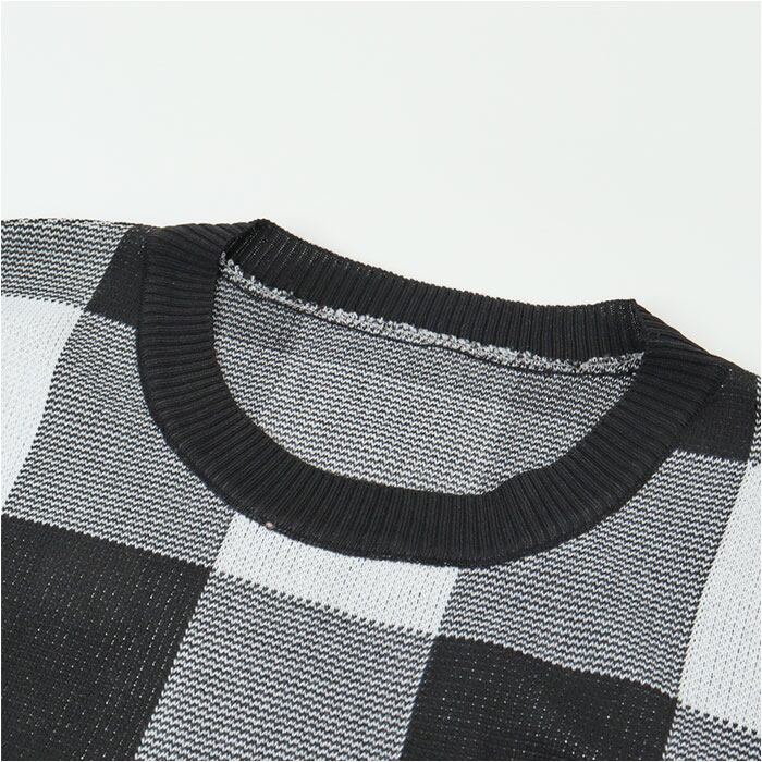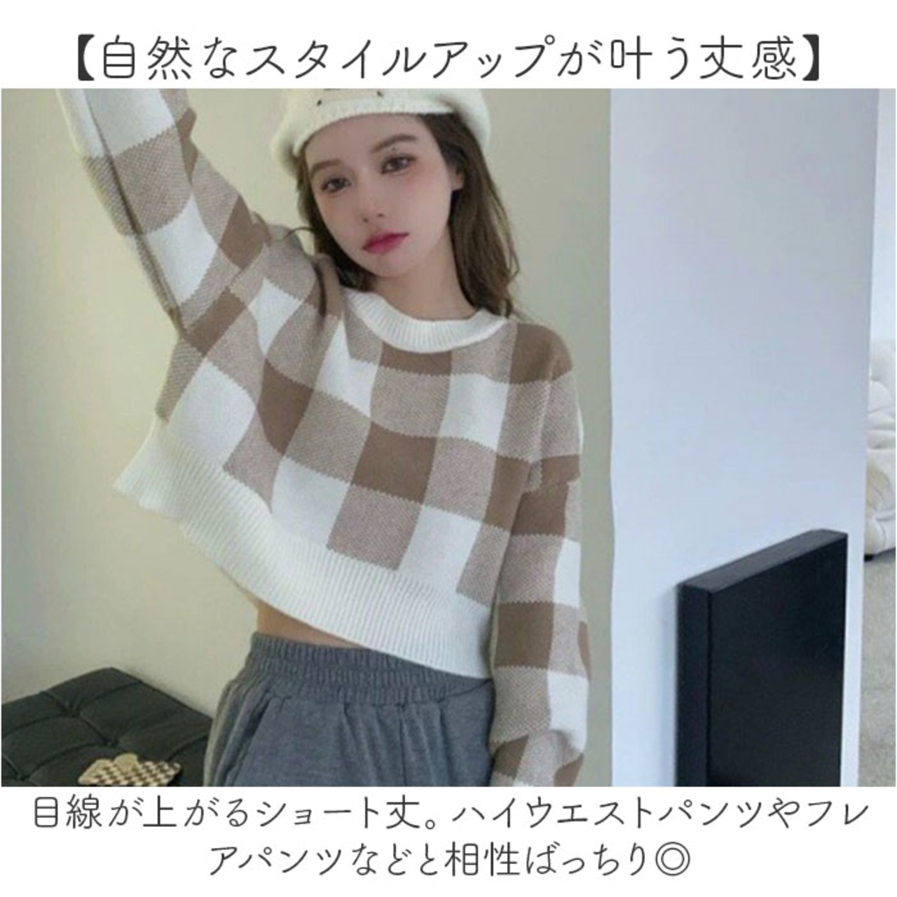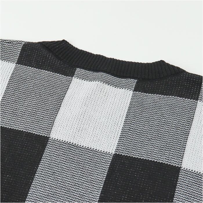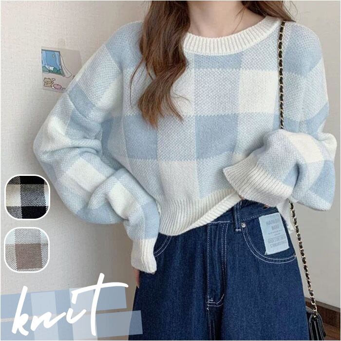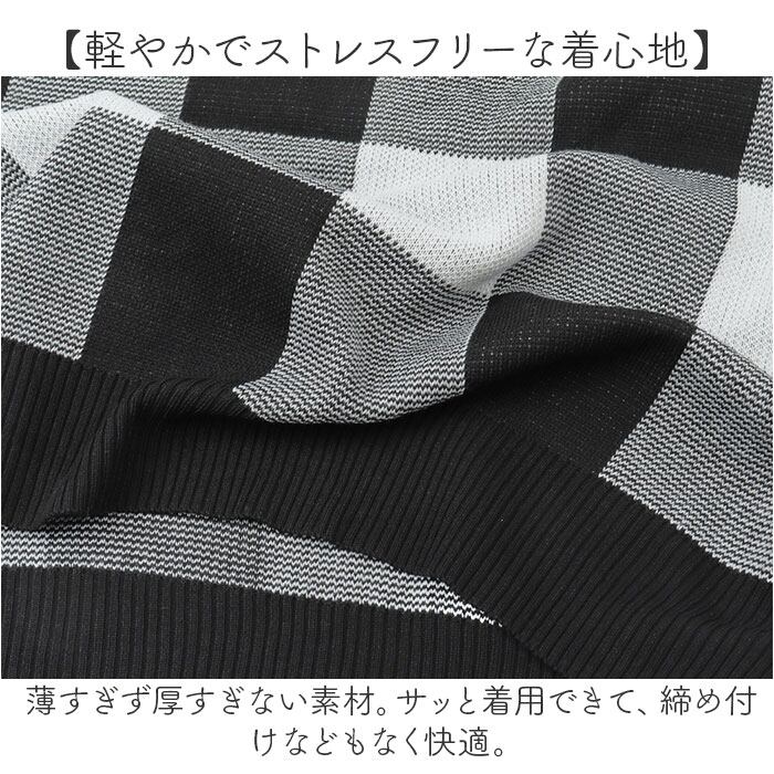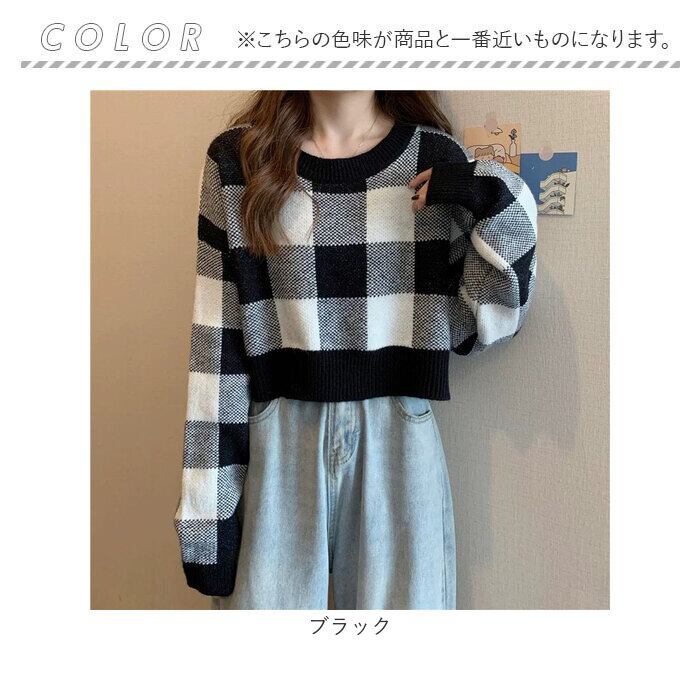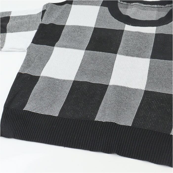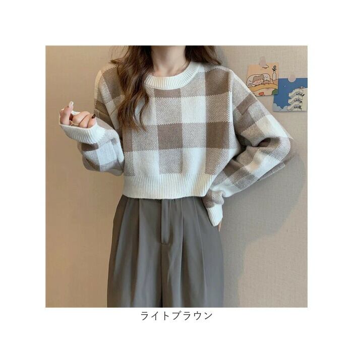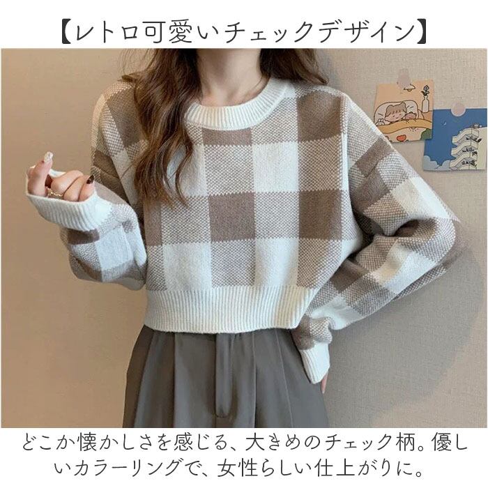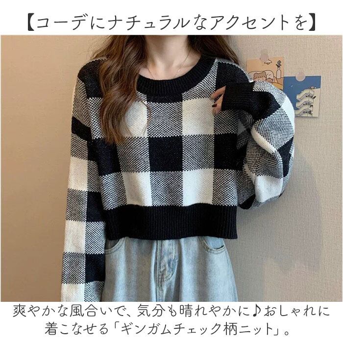 ギンガムチェック柄 春ニット ショート丈