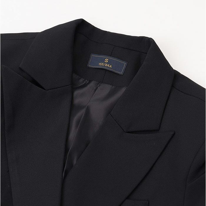 ・フロントボタンを2列に配置、ソフトな肩パッドでフォルムキープ。左右にはフラップポケット。