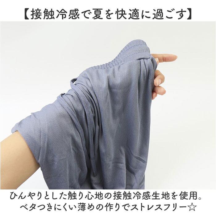 ・ひんやりとした触り心地の接触冷感生地を使用。ベタつきにくい薄めの作りでストレスフリー☆