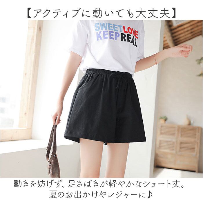 ・動きを妨げず、足さばきが軽やかなショート丈。夏のお出かけやレジャーに♪