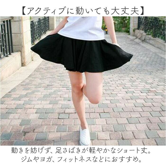 ・動きを妨げず、足さばきが軽やかなショート丈。ジムやヨガ、フィットネスなどにおすすめ。
