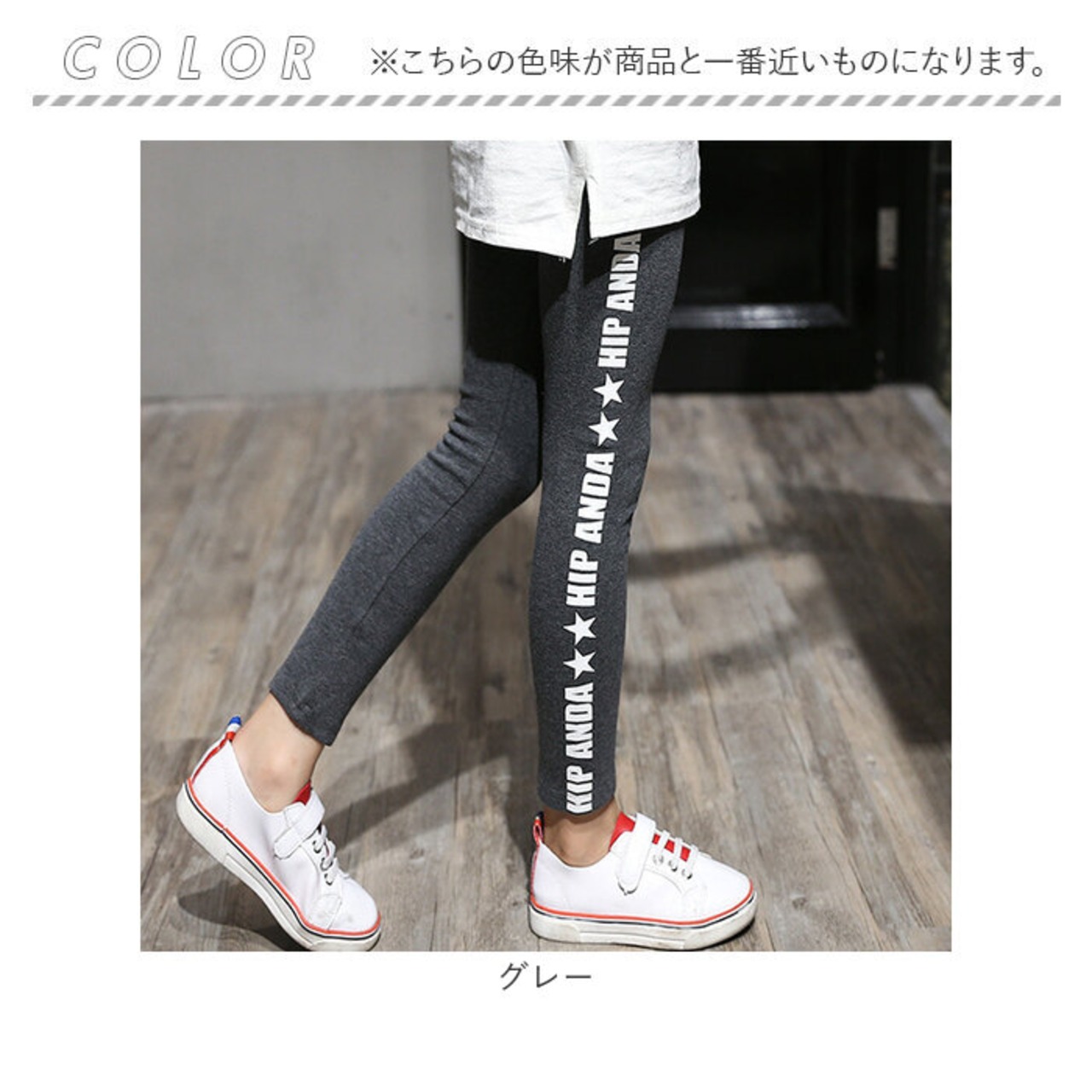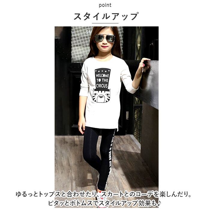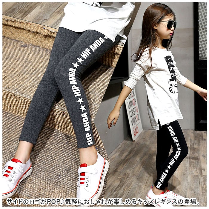 ・サイドのロゴがPOP♪気軽におしゃれが楽しめるキッズレギンスの登場。