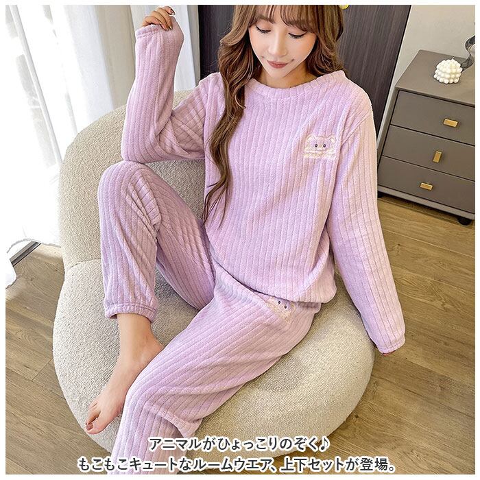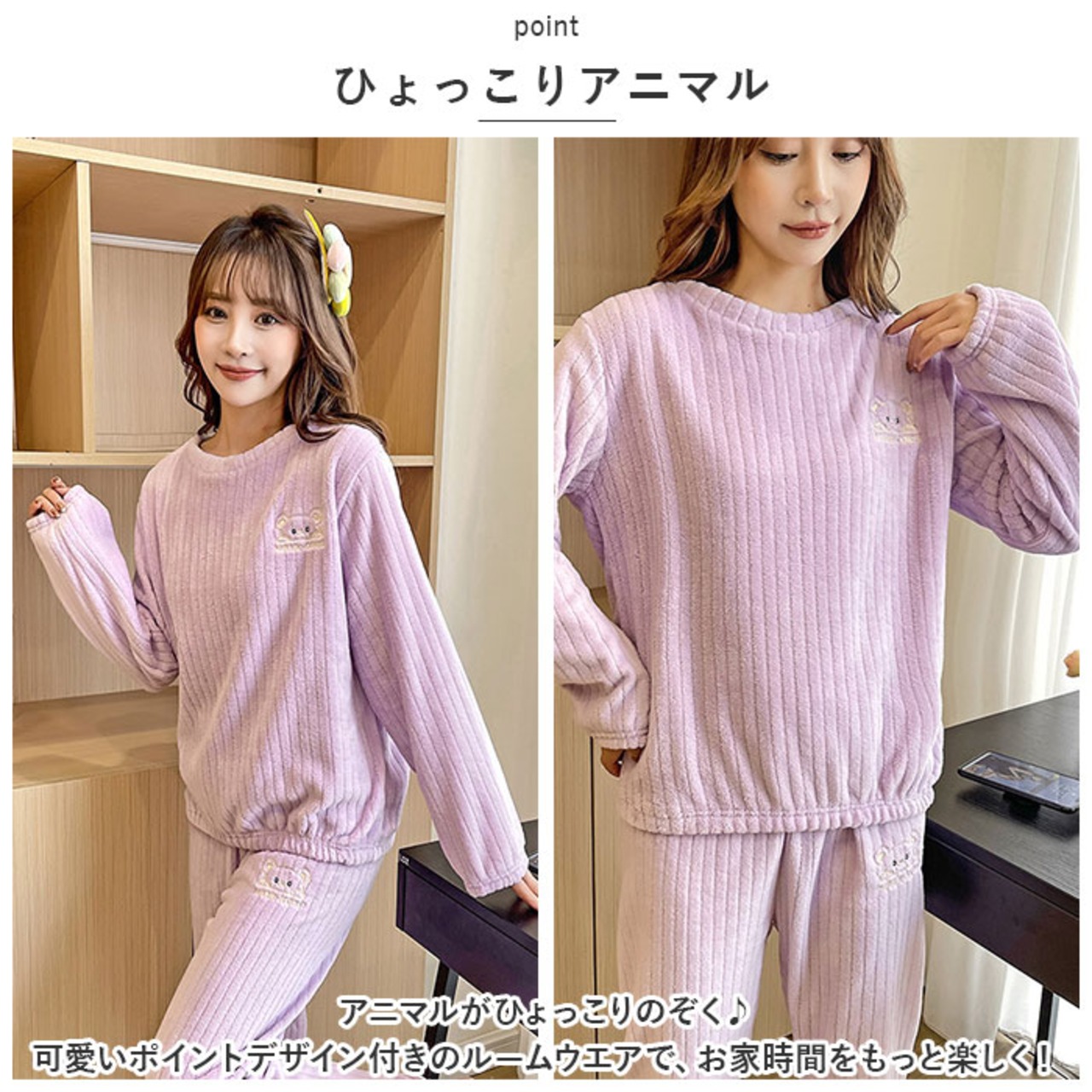 ・アニマルがひょっこりのぞく♪もこもこキュートなルームウエア、上下セットが登場。