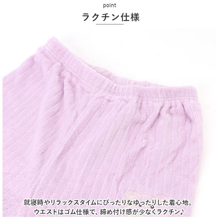 ・就寝時やリラックスタイムにぴったりなゆったりした着心地。ウエストはゴム仕様で、締め付け感が少なくラクチン♪