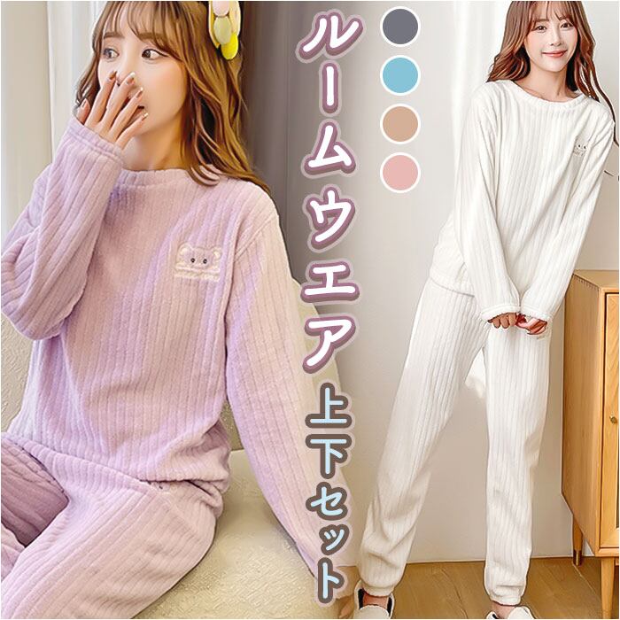 ルームウェア 長袖 レディース 通販 パジャマ 部屋着 寝巻き 上下セット 2点セット セットアップ ナイトウェア スウェット パンツ 可愛い かわいい 修学旅行 旅行 秋 冬 暖かい シンプル オシャレ おしゃれ ルームウエア