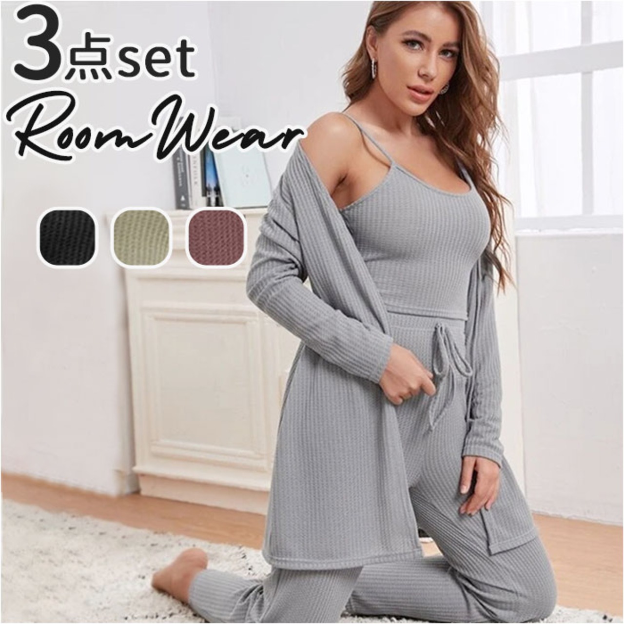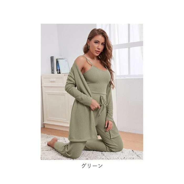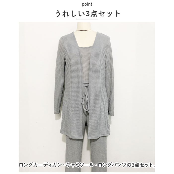 ルームウェア レディース セット 通販 3点 3点セット 部屋着 パジャマ 上下セット セットアップ ニット カーディガン キャミソール パンツ ロングカーディガン ニットパンツ ニットキャミ おしゃれ お洒落 かわいい 可愛い リラックスウェア 春 冬 レディースファッション