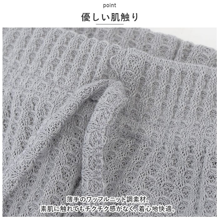 ・薄手のワッフルニット調素材。素肌に触れてもチクチク感がなく、着心地快適。