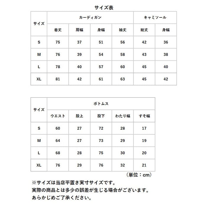 ・ロングカーディガン・キャミソール・ロングパンツの3点セット。