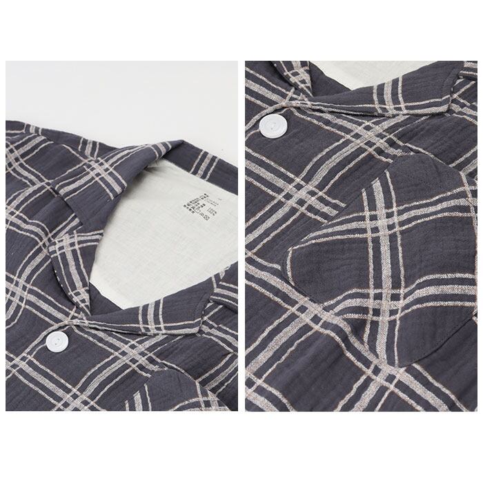 ・スムーズに脱ぎ着できるフロントボタンタイプ。襟元が程よく開いて寝苦しさを軽減◎左胸元にポケット付き。