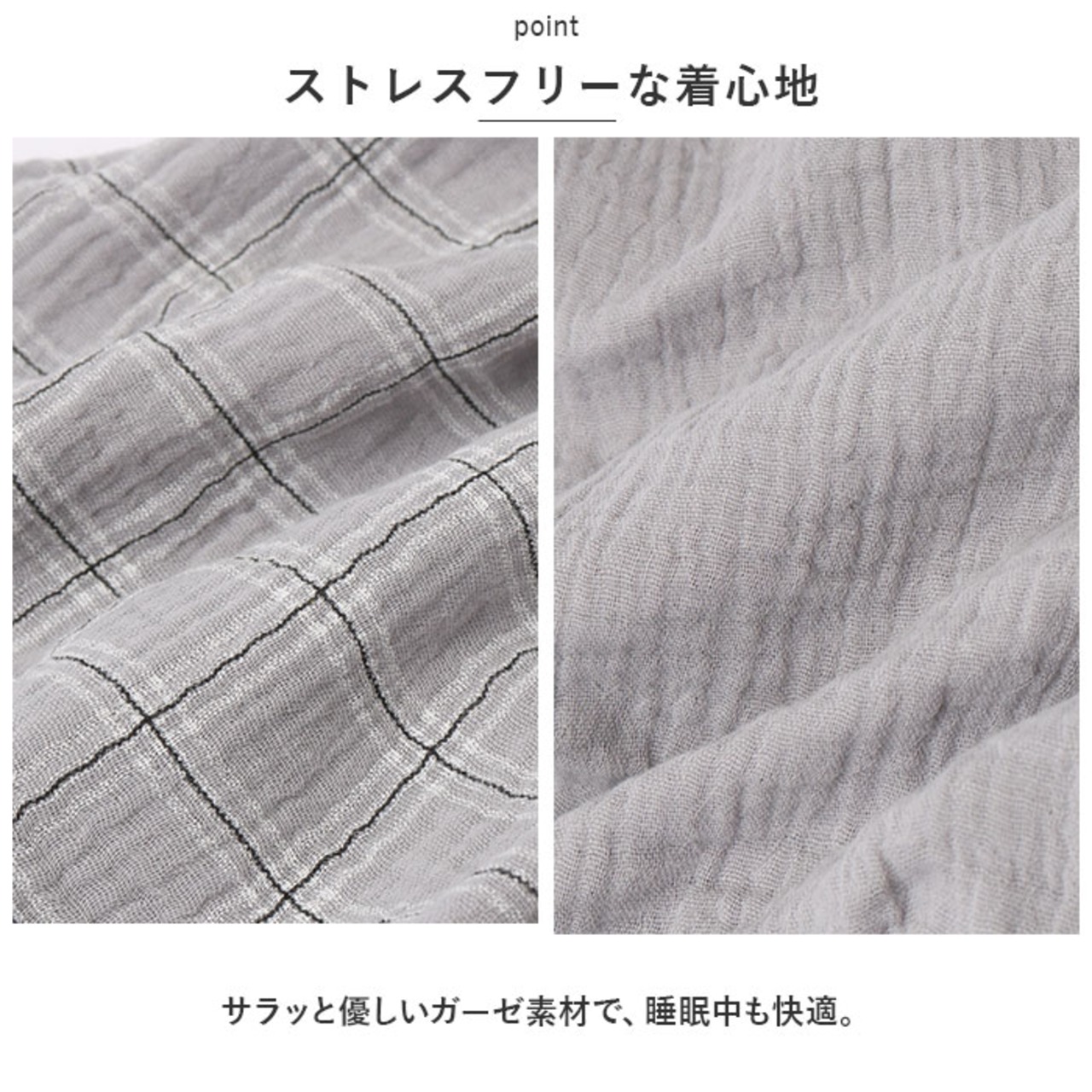 ・サラッと優しいガーゼ素材で、睡眠中も快適。