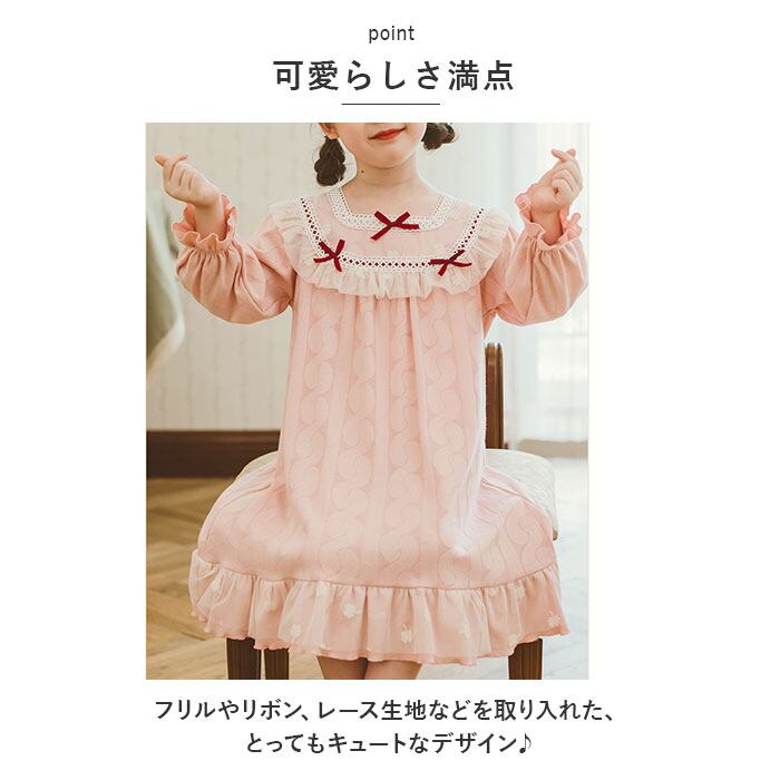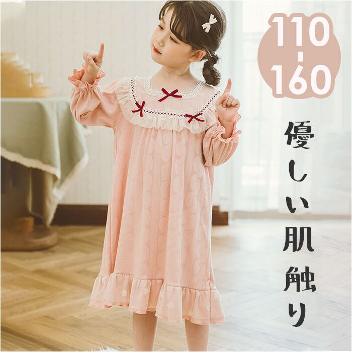 パジャマ キッズ 女の子 通販 子供 長袖 ネグリジェ ナイトウェア ワンピース かわいい 可愛い 部屋着 ルームウェア 寝巻き ねまき 寝間着 薄手 春 秋 ガールズ おしゃれ 子供服 子ども服 ジュニア ピンク キッズファッション