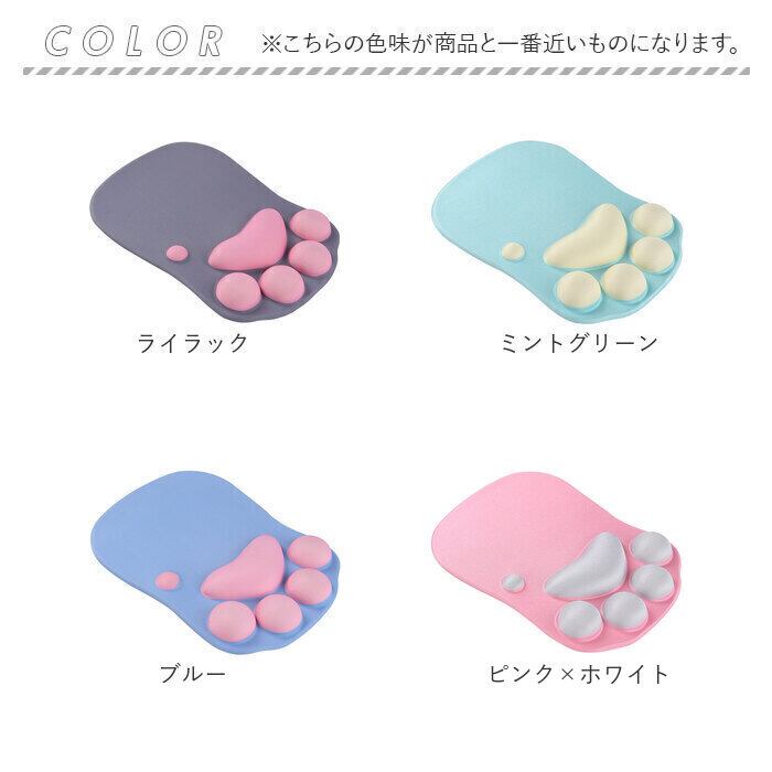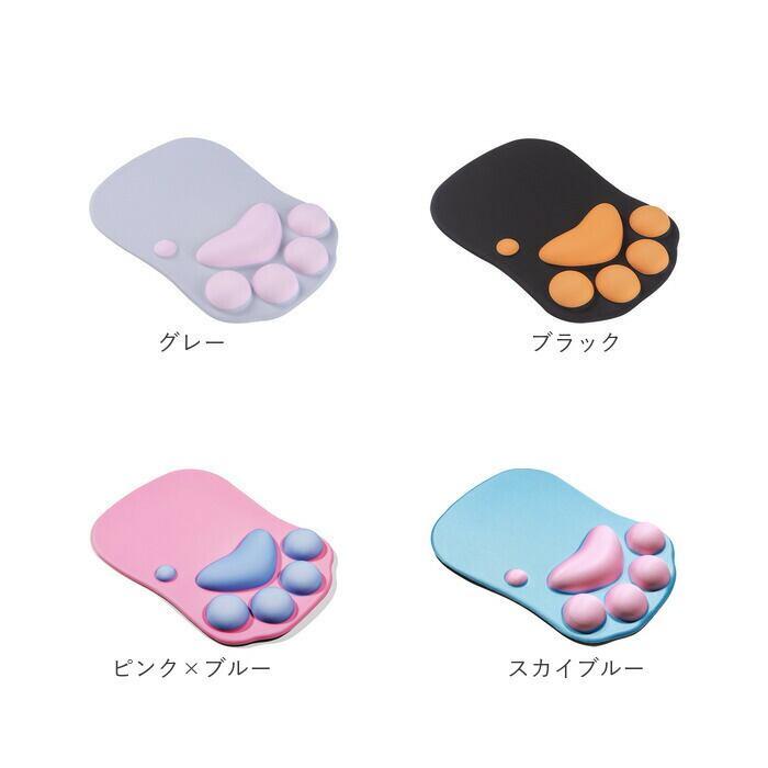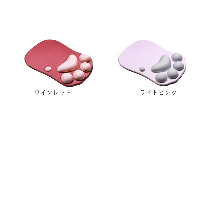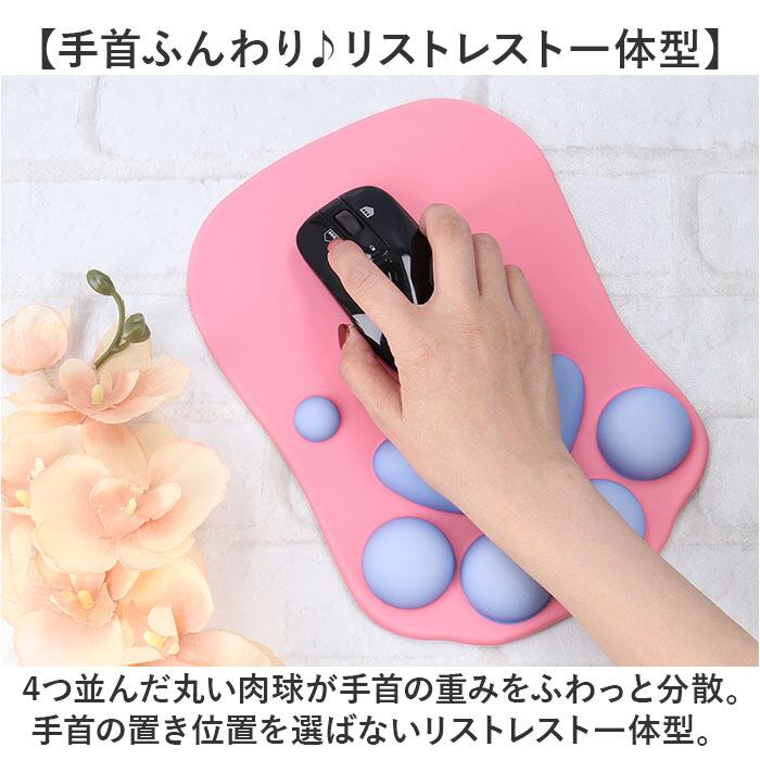 4つ並んだ丸い肉球が手首の重みをふわっと分散。手首の置き位置を選ばないリストレスト一体型。