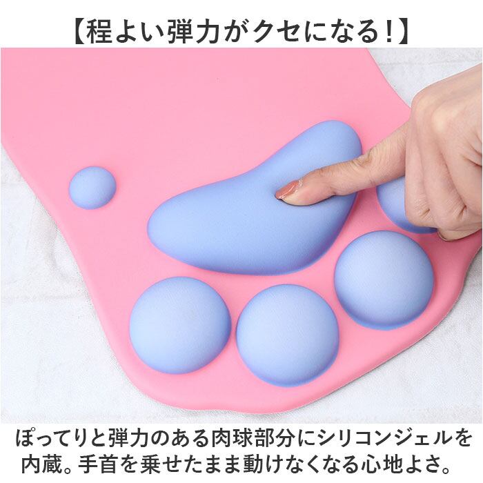 ・ぽってりと弾力のある肉球部分にシリコンジェルを内蔵。手首を乗せたまま動けなくなる心地よさ。