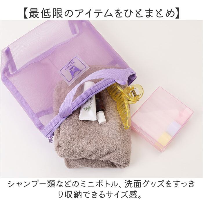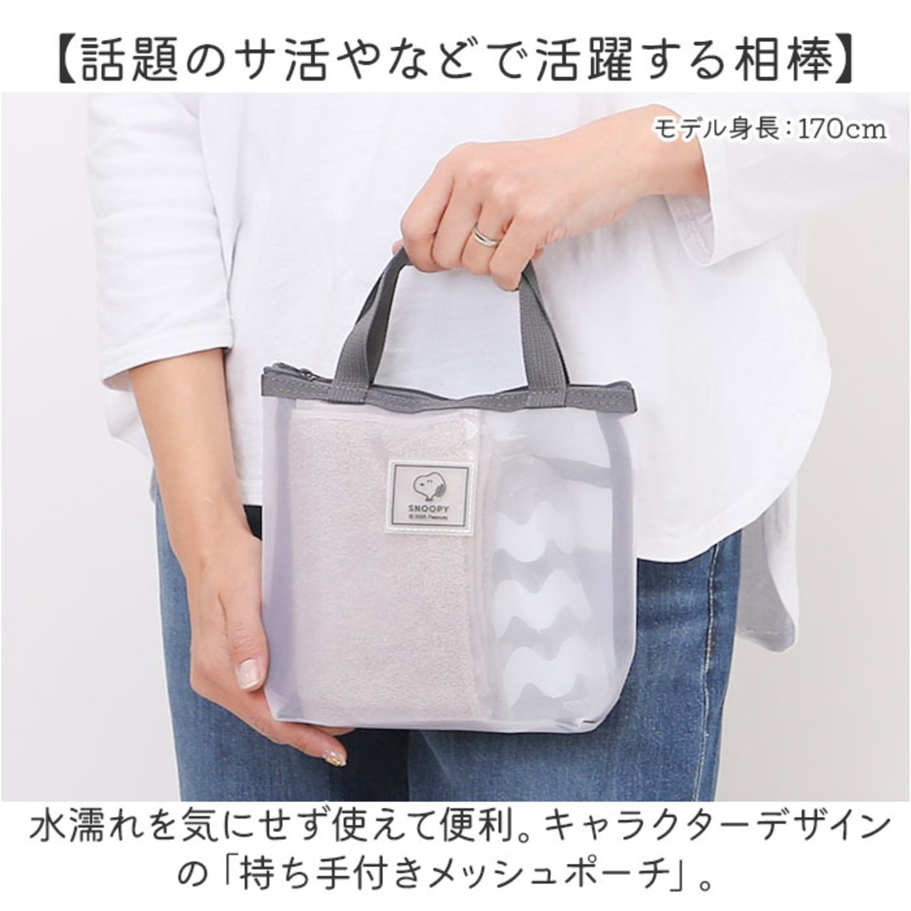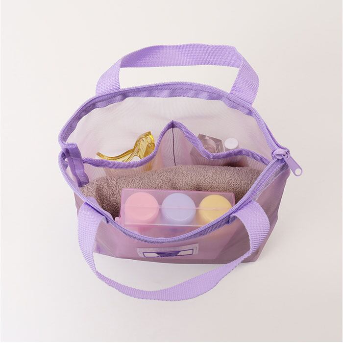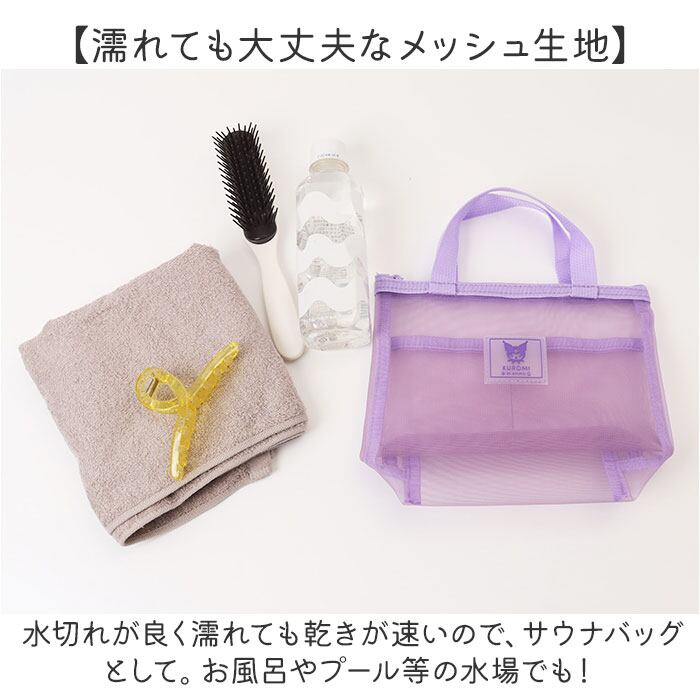 ・水濡れを気にせず使えて便利。キャラクターデザインの「持ち手付きメッシュポーチ」。