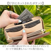 ・ポケットの開口部はU字にカットされたデザインでカードや領収書もスムーズに取り出せる。