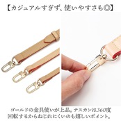 ・ゴールドの金具使いが上品。ナスカンは360度回転するからねじれにくいのも嬉しいポイント。