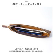 ・L字ファスナー構造で大きく開いて中の筆記用具などをストレスなく出し入れ出来る。