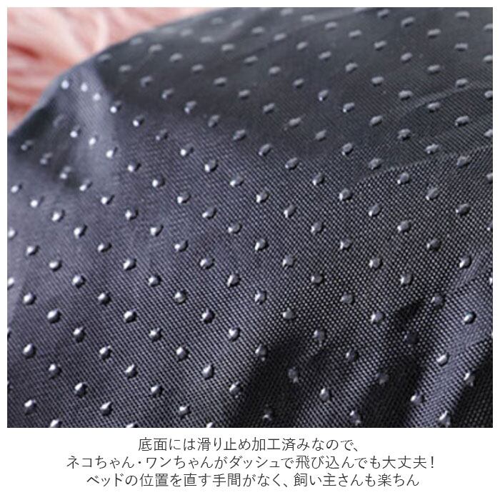 ・底面には滑り止め加工済みなので、ネコちゃん・ワンちゃんがダッシュで飛び込んでも大丈夫!ベッドの位置を直す手間がなく、飼い主さんも楽ちん。
