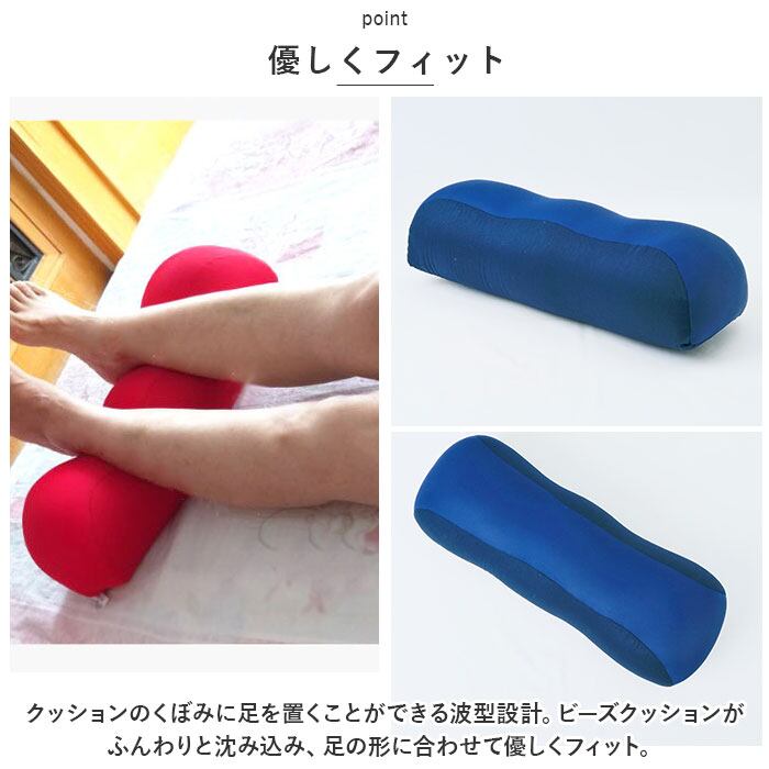 ・クッションのくぼみに足を置くことができる波型設計。ビーズクッションがふんわりと沈み込み、足の形に合わせて優しくフィット。