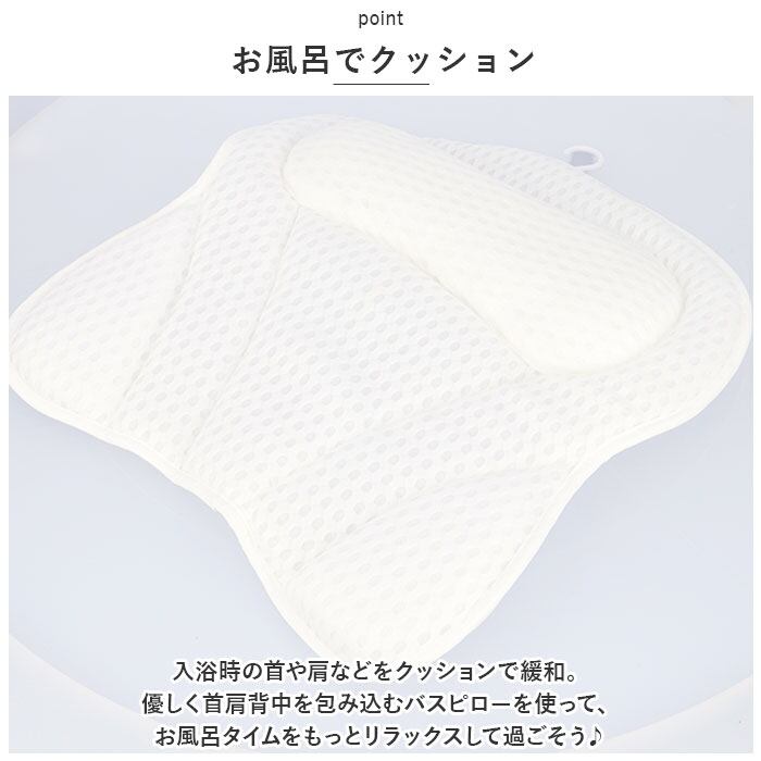 バスピロー 通販 お風呂 枕 首枕 首 ラックス 湯舟 ピロー お風呂枕 入浴用まくら クッション 通気メッシュ 半身浴 うたた寝 柔らかい 気持ちいい 浴槽用 リラックスグッズ バスグッズ お風呂グッズ フック付き
