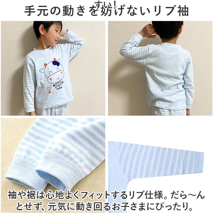 ・袖や裾は心地よくフィットするリブ仕様。だら~んとせず、元気に動き回るお子さまにぴったり。