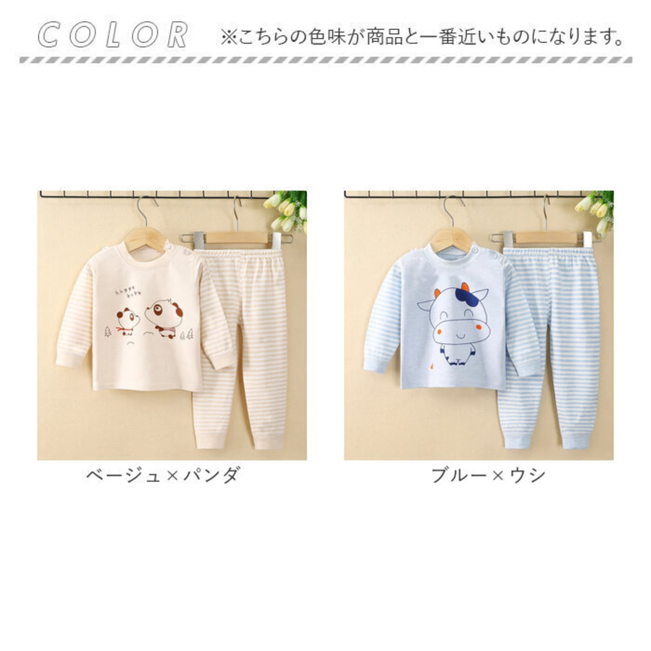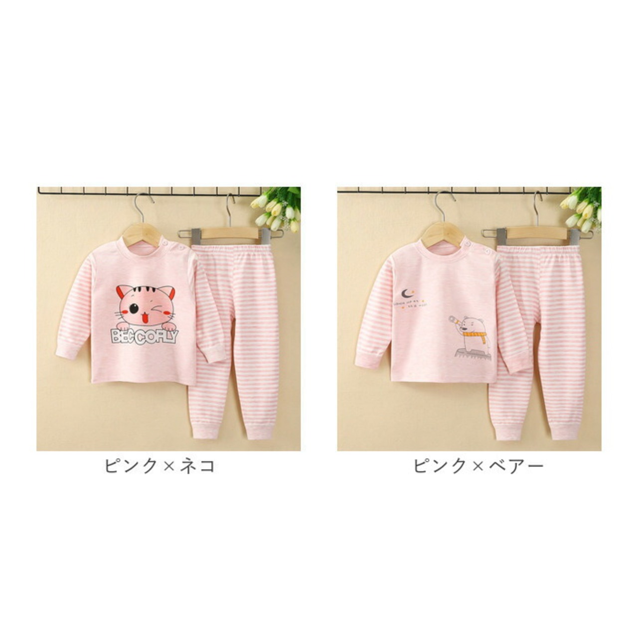 ・長袖トップス&パンツのセット。ちょっぴり肌寒い日や季節の変わり目に!お手持ちのパーカーなどをプラスしてもOK。