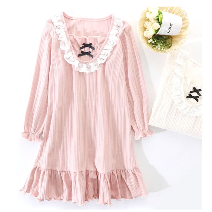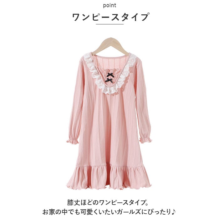 ・膝丈ほどのワンピースタイプ。お家の中でも可愛くいたいガールズにぴったり♪