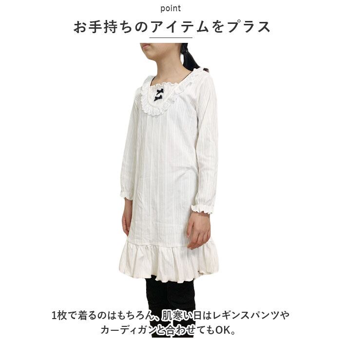 ・1枚で着るのはもちろん、肌寒い日はレギンスパンツやカーディガンと合わせてもOK。