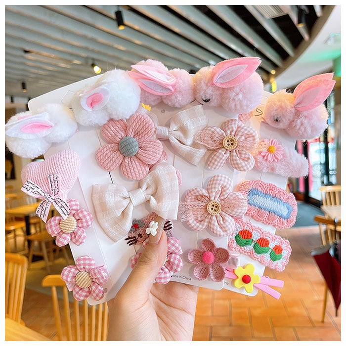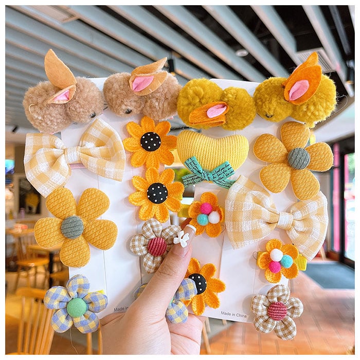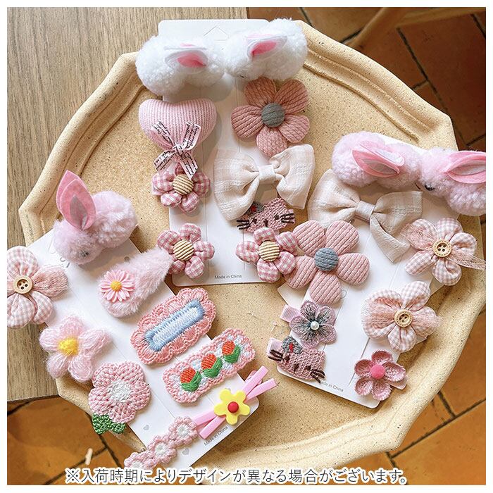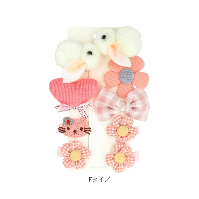 ・ハンドメイド風の刺繍や、フワモコ素材の小さなぬいぐるみが子供らしさUP!(※ぬいぐるみのヘアピンはタイプによって入っていない場合があります。ご購入前にセット内容をよくご確認下さい。)