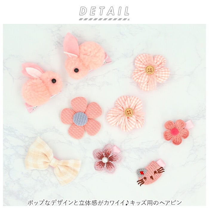 ・色んな組み合わせを楽しめる、可愛いヘアピン9点セット。