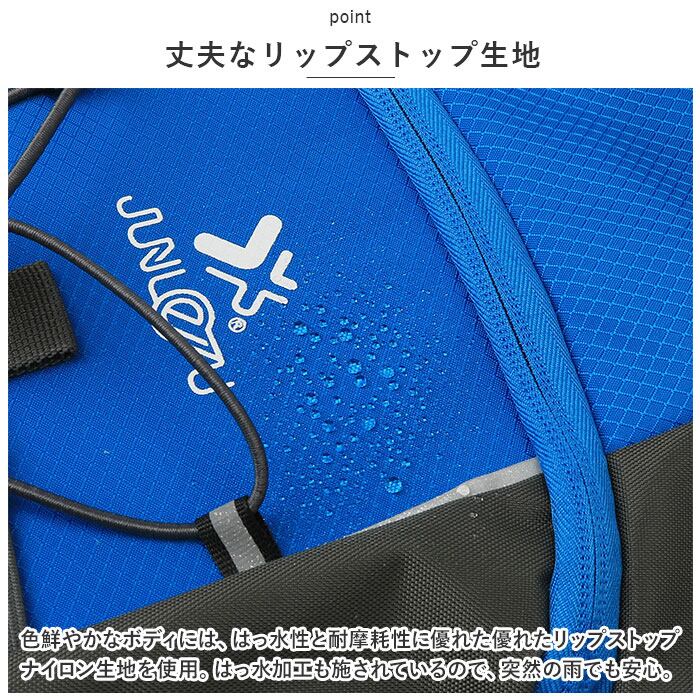 ・色鮮やかなボディには、はっ水性と耐摩耗性に優れた優れたリップストップナイロン生地を使用。はっ水加工も施されているので、突然の雨でも安心。