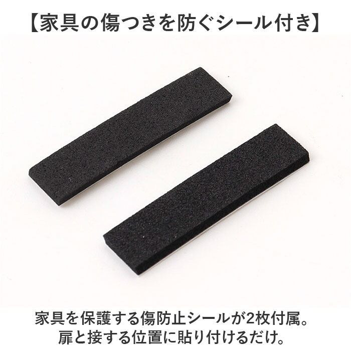 ・家具を保護する傷防止シールが2枚付属。扉と接する位置に貼り付けるだけ。