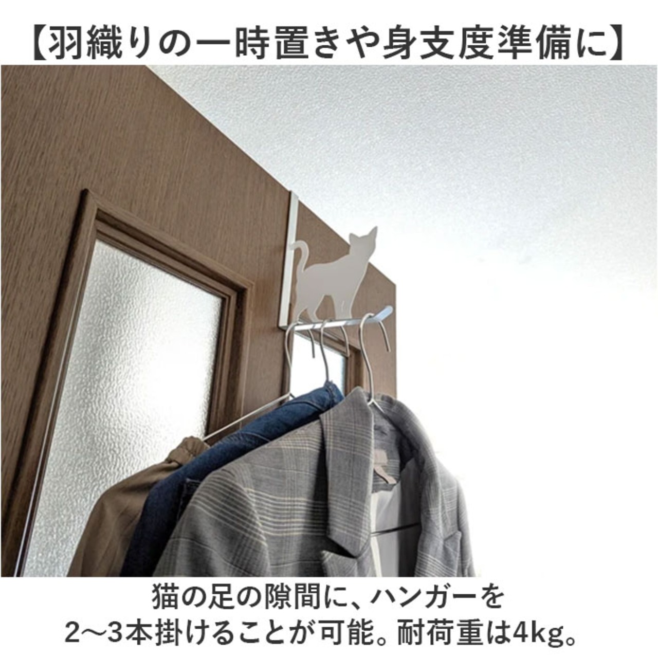 ・猫の足の隙間に、ハンガーを2〜3本掛けることが可能。耐荷重は4kg。
