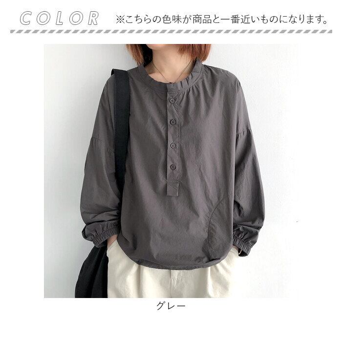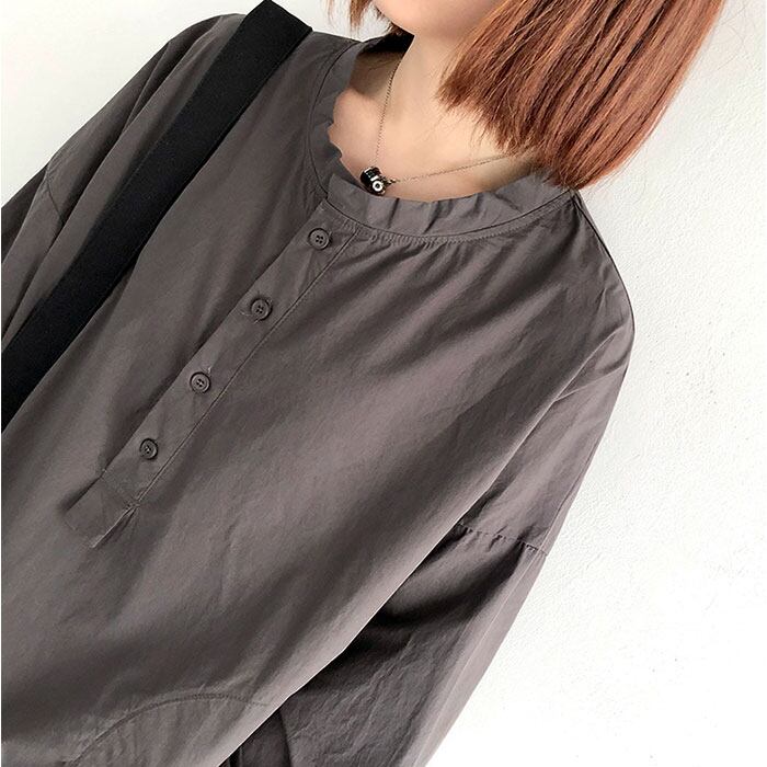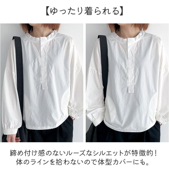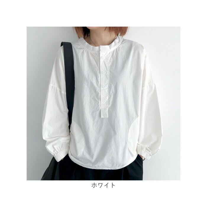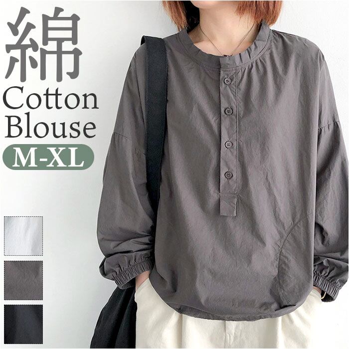 コットンシャツ レディース 長袖ブラウス クルーネック
