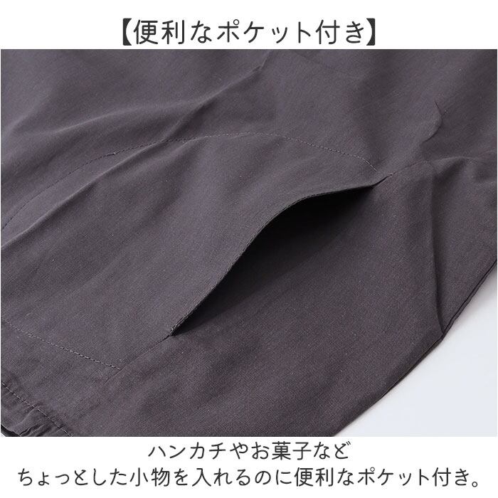 ・ハンカチやお菓子などちょっとした小物を入れるのに便利なポケット付き。