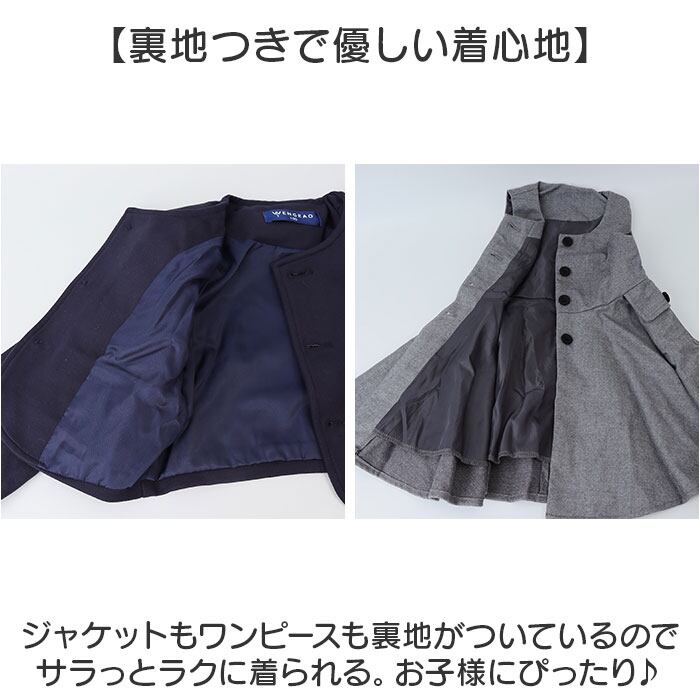 ・ジャケットもワンピースも裏地がついているのでサラっとラクに着られる。お子様にぴったり♪